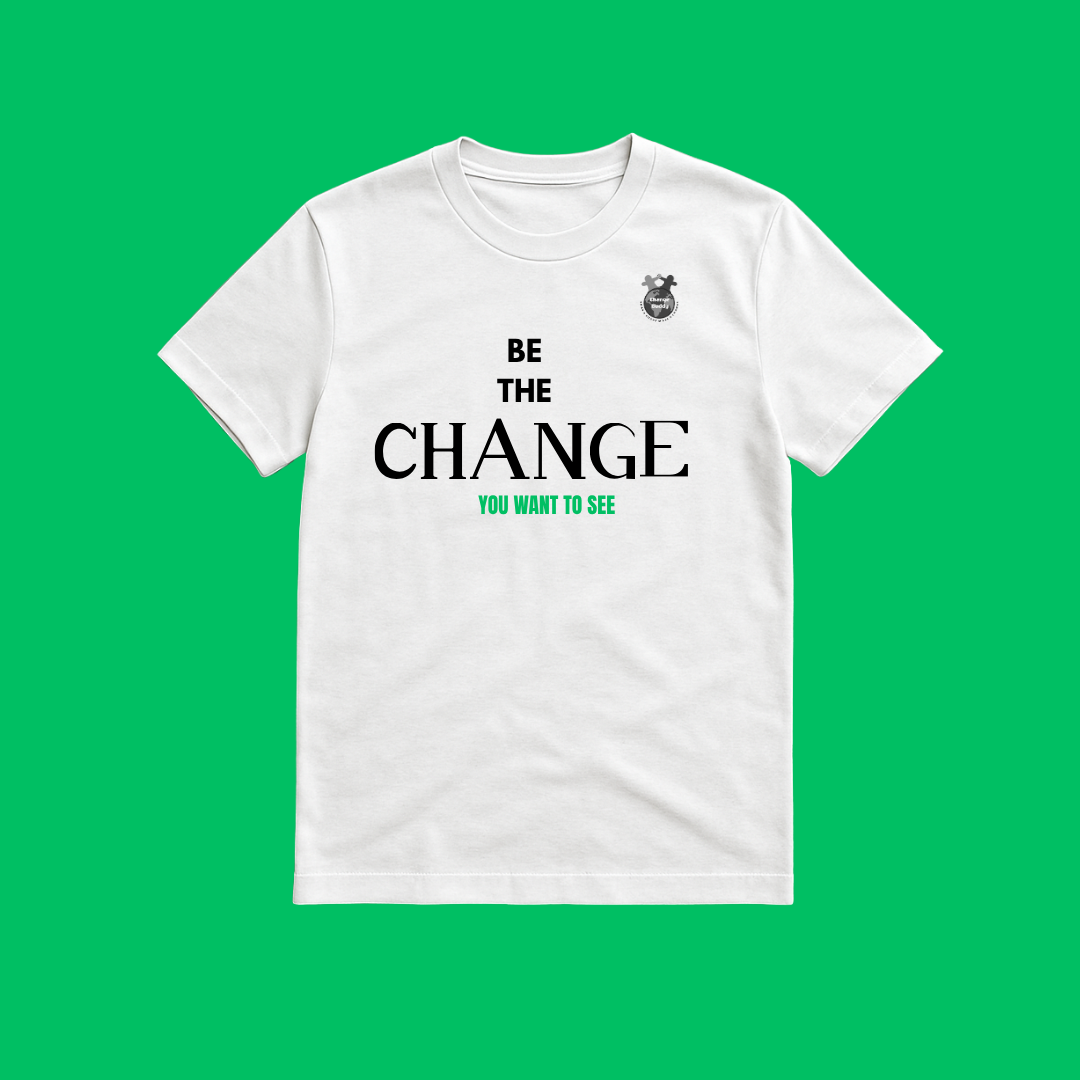 A T-shirt - Be the Change you want to see white short-sleeved T-shirt black and green writing